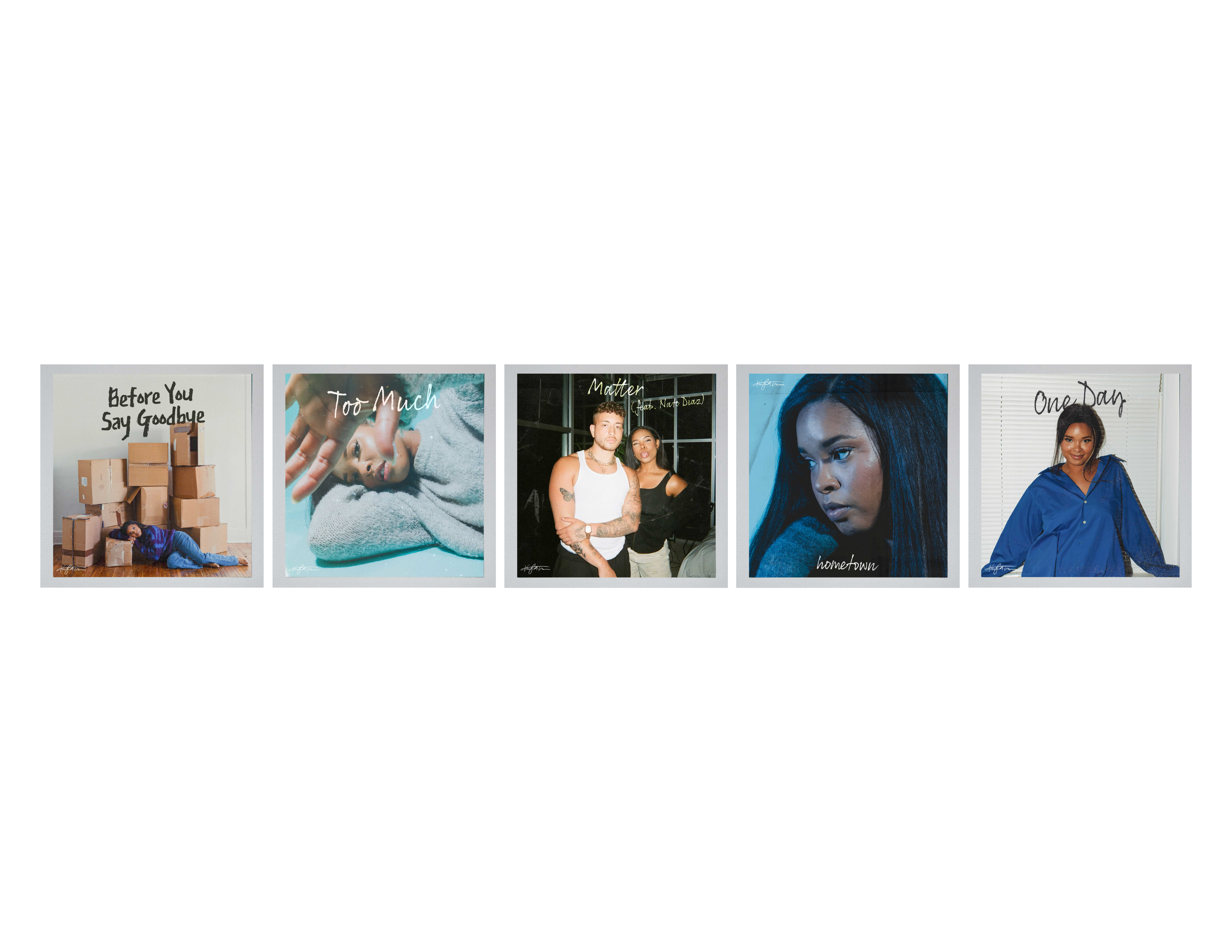 An artist I work with, Kayla Thompson, hired me to make individual track covers for each song off of her new EP “A Shot In The Dark”. She showed me inspiration images of designs from artists like Sabrina Carpenter and Gracie Abrams. After agreeing on a Polaroid picture concept I brought my images into Photoshop and created the album covers seen below. You can find these designs on her Instagram.